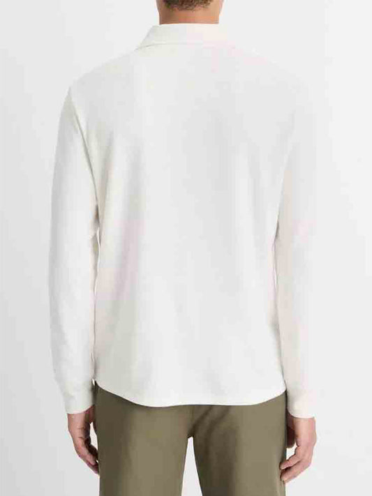 Vince Double Face Long Sleeve Polo Shirt in Cream/Optic White