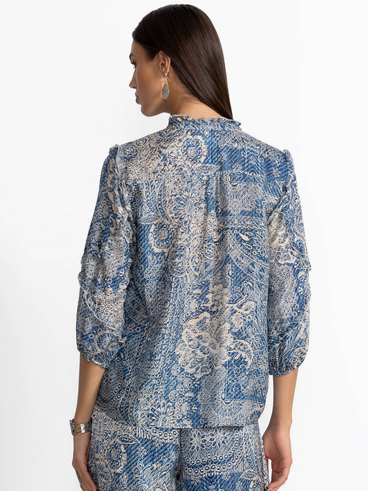 Akris Punto Pajama Stripe Boxy Collared Shirt in Medium Blue/Cream