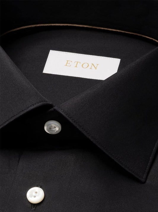 Eton Contemporary Fit Solid Signature Twill Dress Shirt in Black - Single Cuff