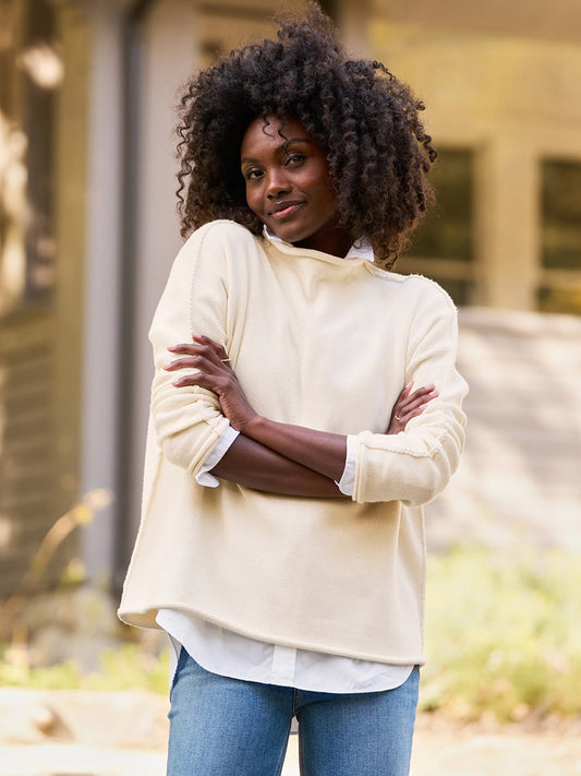 Frank & Eileen Monterey Rolled Funnel Neck Sweater in Cream