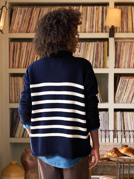 Frank & Eileen Monterey Rolled Funnel Neck Sweater in Navy & Cream Stripe