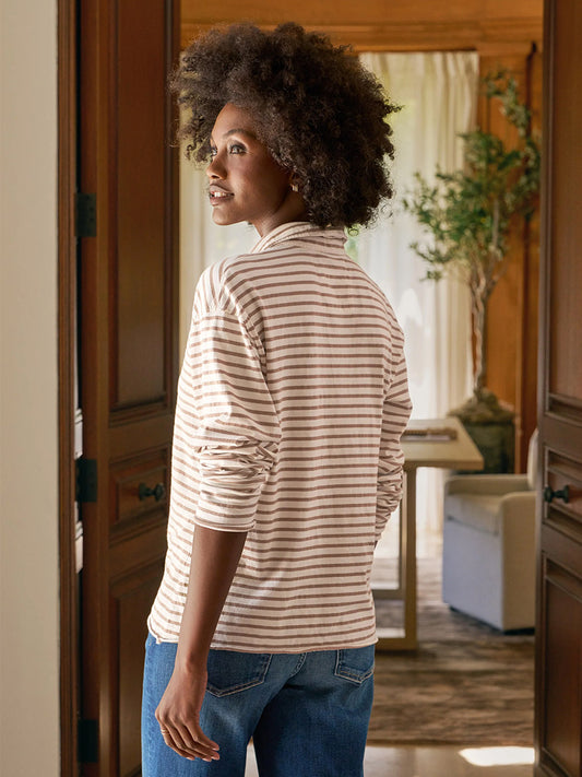 Frank & Eileen Patrick Popover Henley in Vintage White & Camel Stripe Heritage Jersey