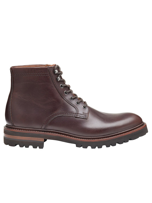 J & M Collection Dudley Lug Plain Toe Boot in Mahogany Full Grain