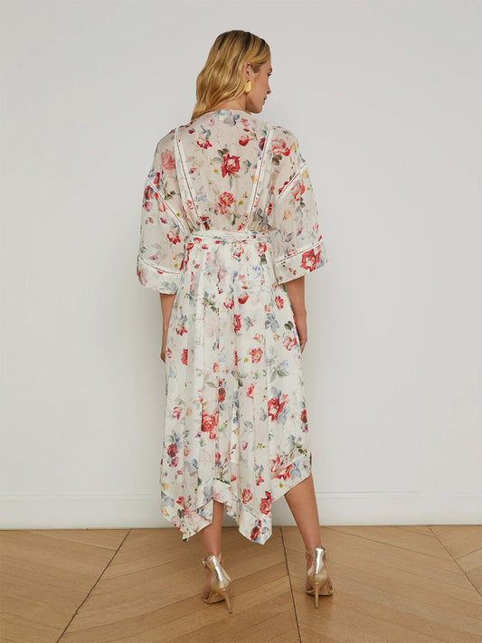 L'Agence Miki Silk Dress in Ivory Multi Watercolor Dusty Floral