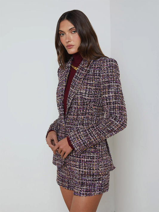 L'Agence Chamberlain Tweed Blazer in Purple Multi
