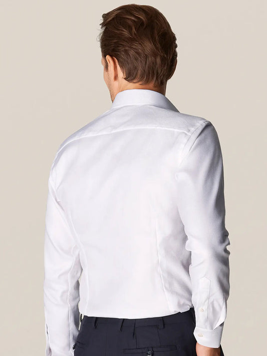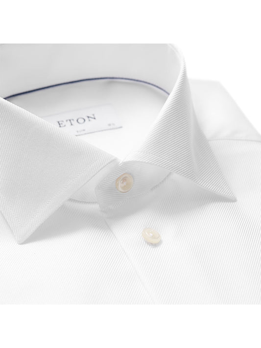 Eton Slim Fit White Twill Dress Shirt With Grey Details