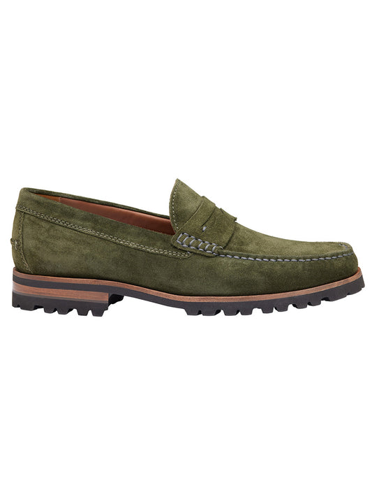 J & M Collection Baldwin Lug Penny in Olive English Suede
