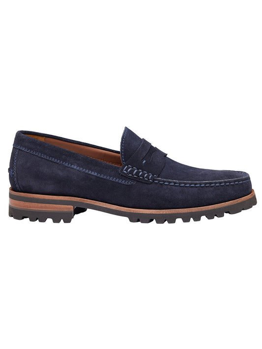 J & M Collection Baldwin Lug Penny in Navy English Suede