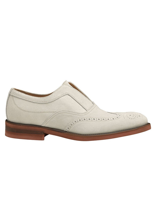 J & M Collection Ashford Wingtip Slip-On in Bone Italian Suede