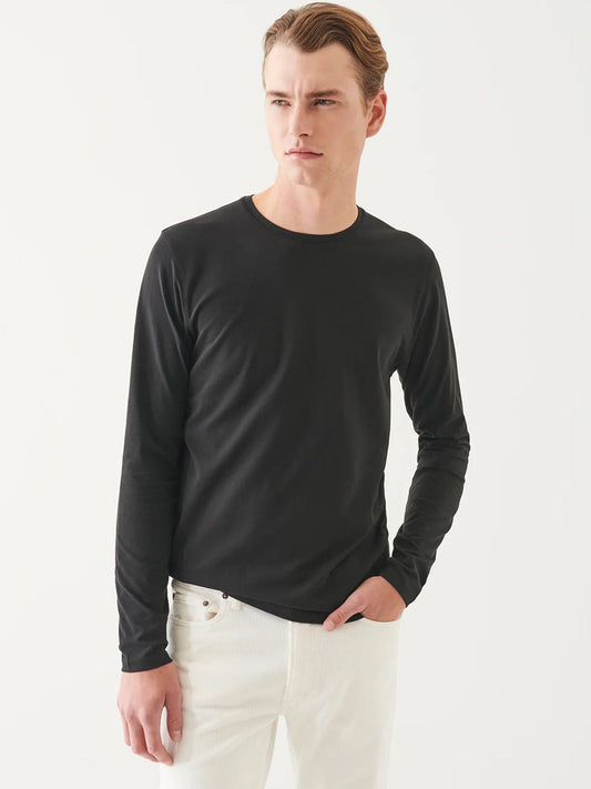 Patrick Assaraf Pima Cotton Stretch Long Sleeve T-Shirt in Black