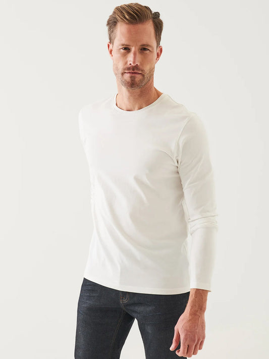 Patrick Assaraf Pima Cotton Stretch Long Sleeve T-Shirt in White