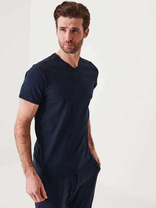 Patrick Assaraf Pima Cotton Stretch V-Neck T-Shirt in Midnight