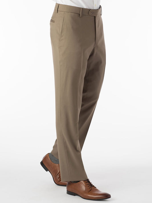 Ballin Soho Comfort 'EZE' Super 120s Modern Flat Front Pant in Tan