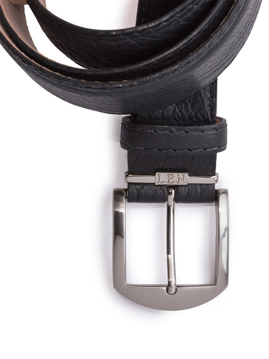 LEN Belts American Bison Belt in Black with Black Edge & Border Stitching