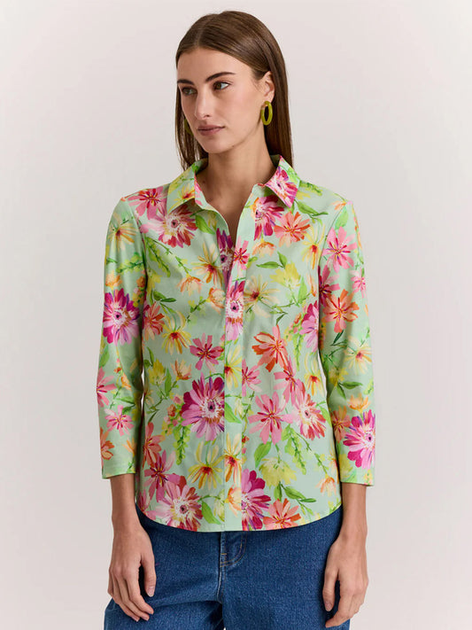 Hinson Wu Lizette 3/4 Sleeve Green Floral Print Top in Green Floral