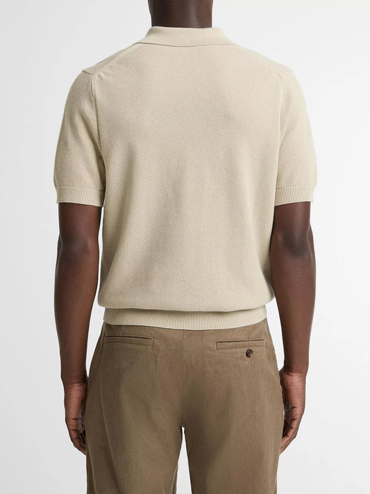 Vince Cotton-Cashmere Piqué Zip Polo Sweater in Parchment