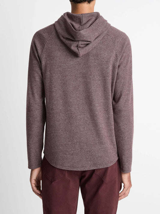 Vince Broken Twill Pullover Hoodie in Port/Heather Grey