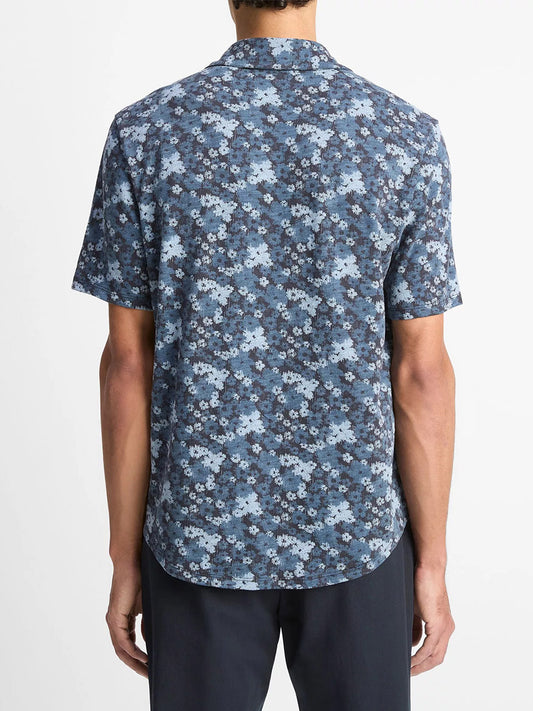 Vince Floral Slub Cotton Short-Sleeve Button-Front Shirt in Coastal Blue