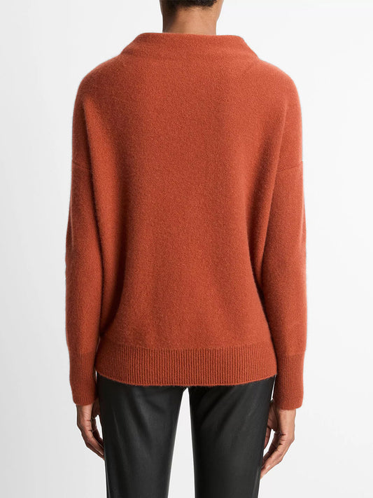 Vince Plush Cashmere Funnel-Neck Sweater in Tuscan Red