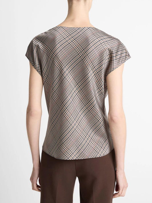 Vince Pressed Plaid Silk Cowl-Neck Blouse in Multi Plaid