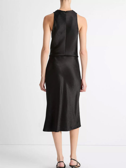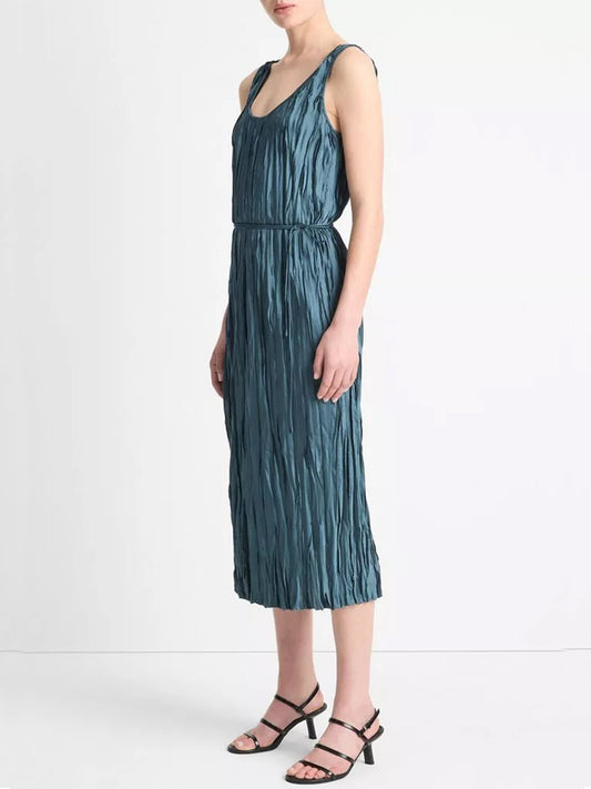 Vince Crushed Satin Bias Tank Dress in Marine Stone