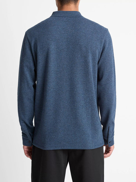 Vince Heathered Double-Face Cotton-Blend Polo Shirt in Heather Coastal Blue/Heather Fog