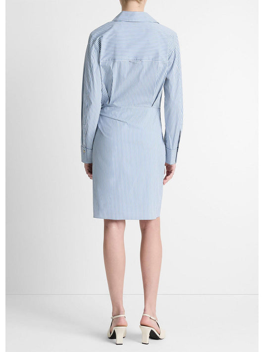 Vince Furrow Stripe Cotton-Blend Wrap Dress in Coastal Blue/Off-White
