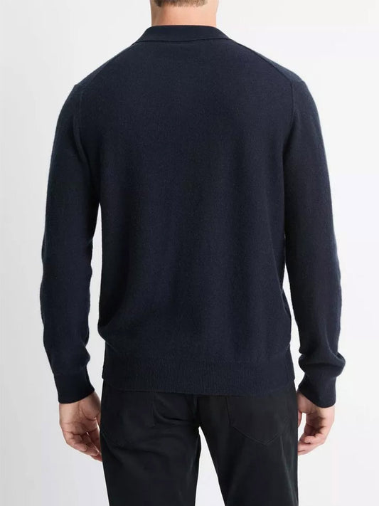 Vince Plush Cashmere Johnny-Collar Polo in Coastal