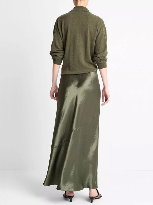 Vince Silk Bias Long-Sleeve Blouse in Cypress