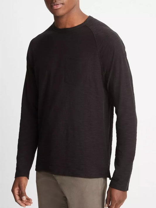 Vince Cotton Long Sleeve Pocket Crew T-Shirt in Black