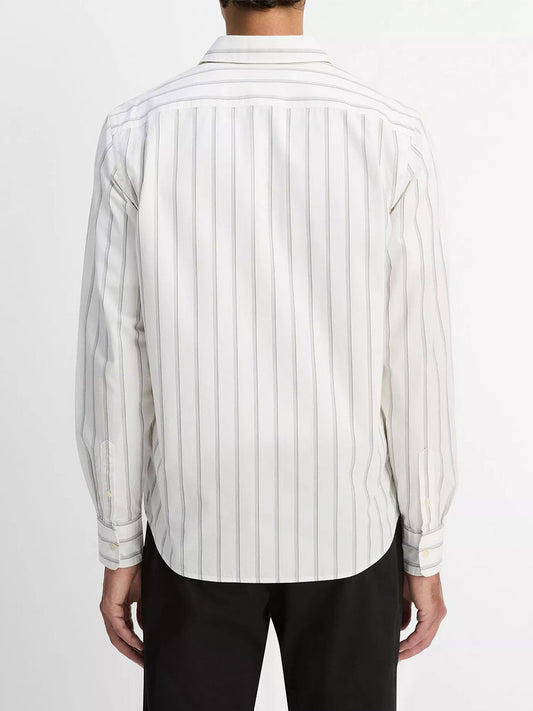 Vince Port Stripe Cotton Button-Front Shirt in Off White/Smoke