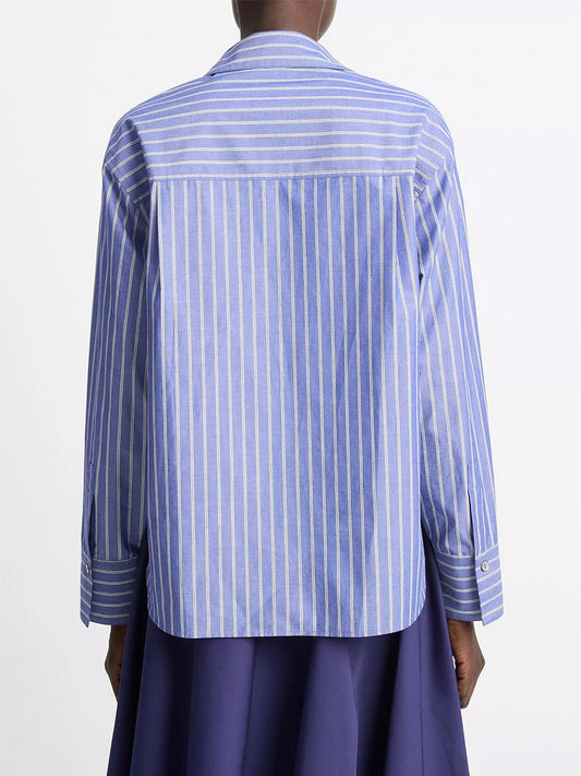 Vince Striped Cotton Relaxed Popover Shirt in Pale Twilight