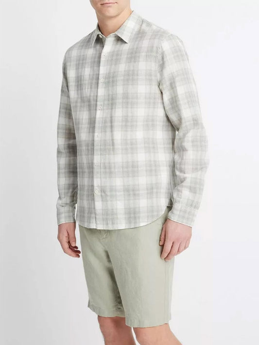 Vince Salton Plaid Long-Sleeve Shirt in Alabaster/Dried Cactus