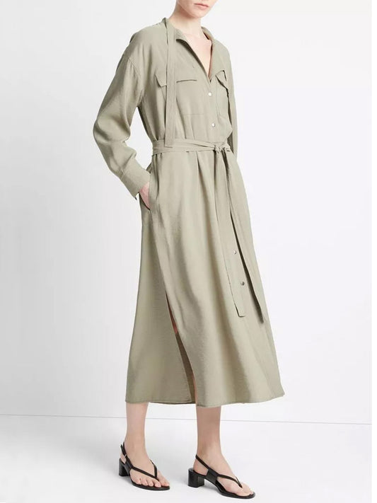 Vince Grape Vine Crushed Satin Shirt Dress in Black Sky
