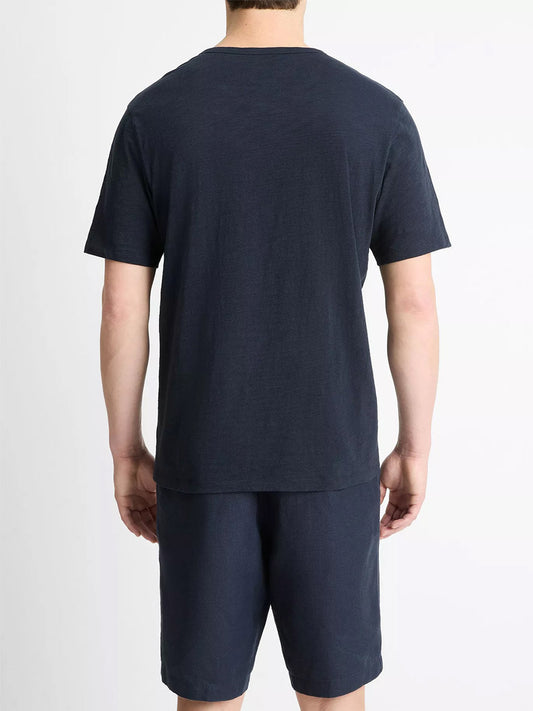 Vince Slub Cotton Split-Neck T-Shirt in Coastal Blue