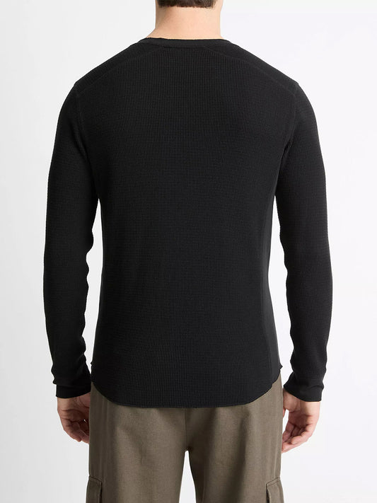 Vince Pima Cotton-Blend Thermal Long-Sleeve Pullover in Black