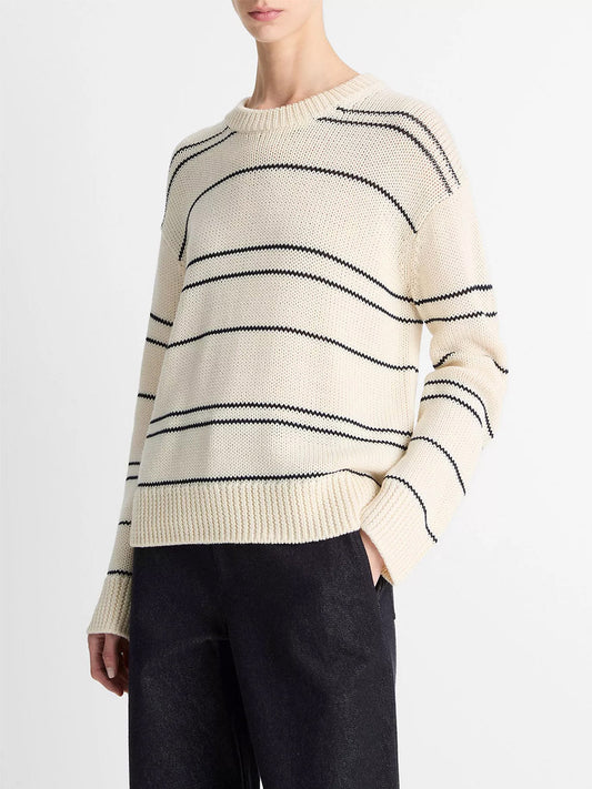 Vince Variegated Stripe Wool-Blend Sweater in Oat Shell/Navy