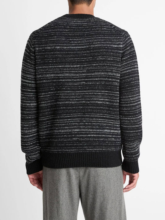 Vince Marled Stripe Merino Wool-Blend Sweater in Black