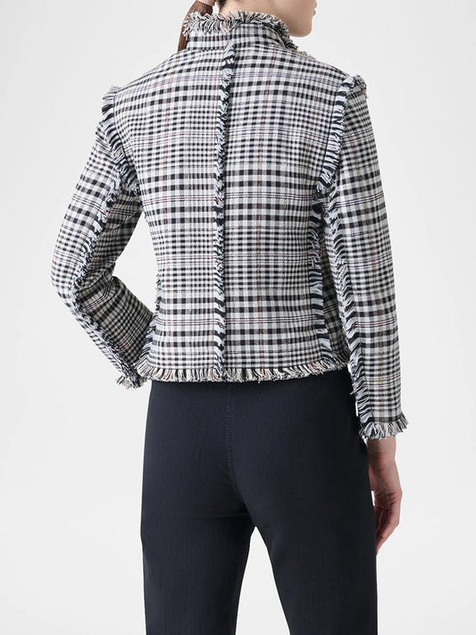 Akris Punto Check Fringe Hem Cropped Jacket in Cream/Black