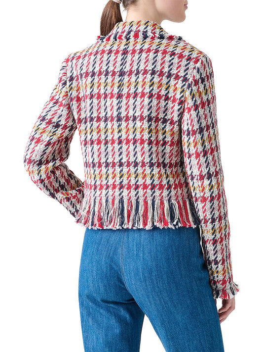 Akris Punto Houndstooth Tweed Fringe Trim Blazer in Cream Multi