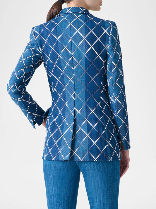Akris Punto Diamond Cotton Jacquard Fitted Blazer in Medium Blue Multi