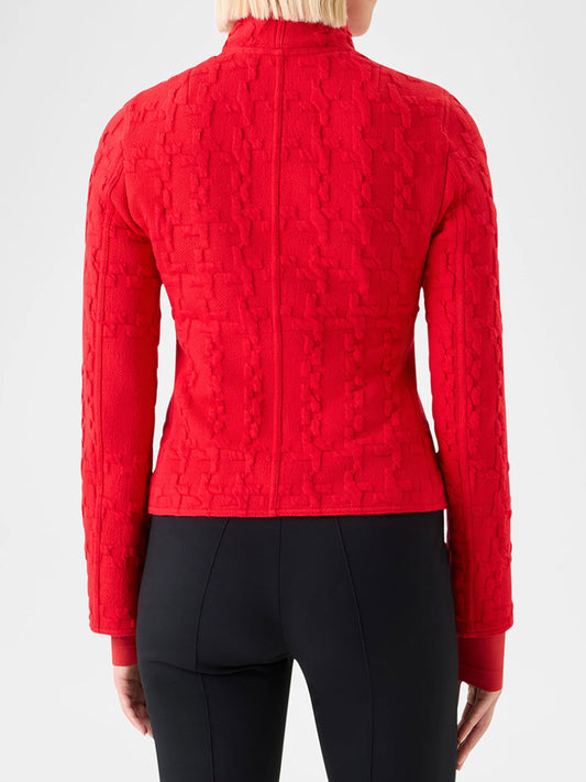 Akris Punto Glencheck 3D Jersey Biker Jacket in Vermillion
