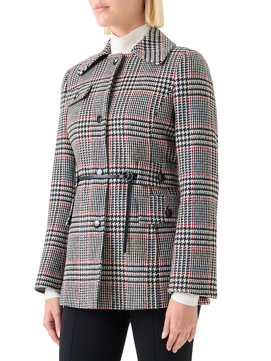Akris Punto Glencheck Wool-Blend Jacket in Black/Cream/Vermillion