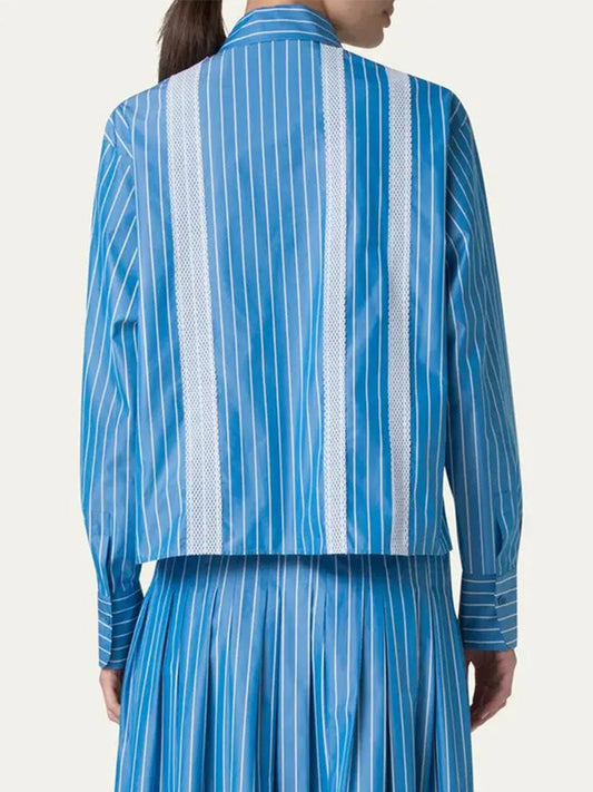 Akris Punto Pajama Stripe Boxy Collared Shirt in Medium Blue/Cream