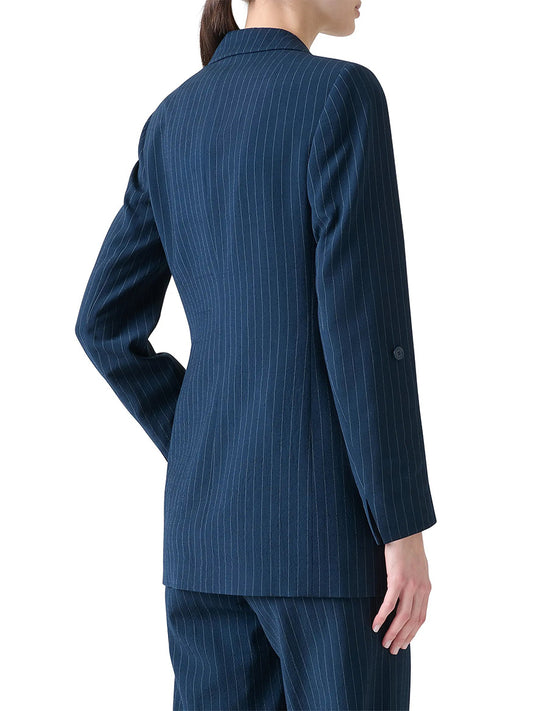 Akris Punto Pinstripe Virgin Wool Jacket in Navy/Cream
