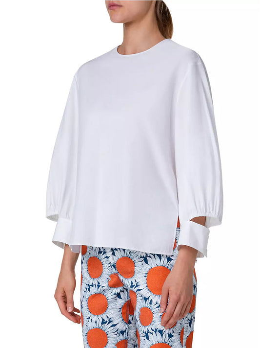 Akris Punto Puff Sleeve Cotton Poplin Blouse in Cream