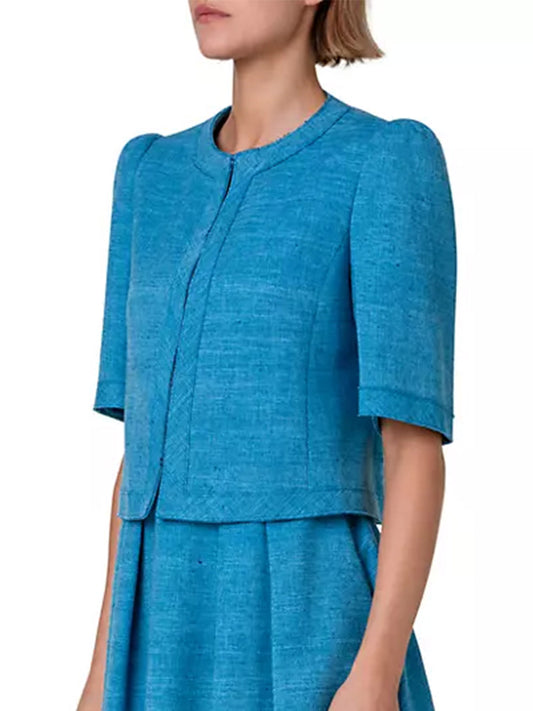 Akris Punto Short Sleeve Silk Blend Jacket in Medium Blue