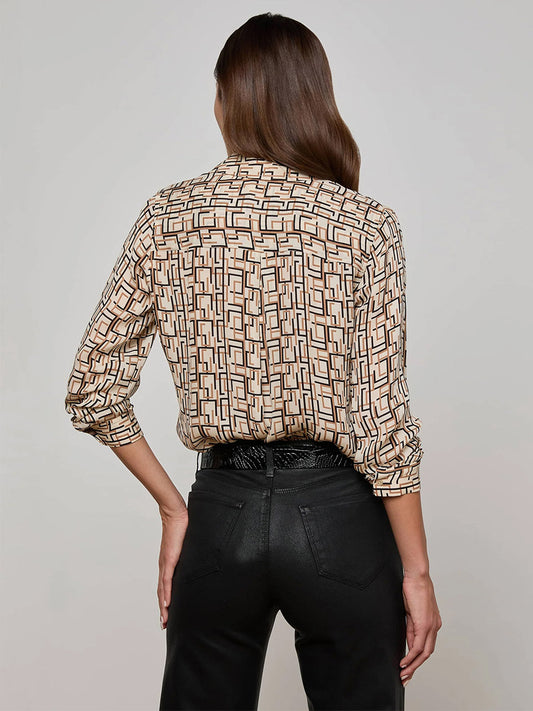 L'Agence Nina Silk Blouse in Ecru Multi Geo Print