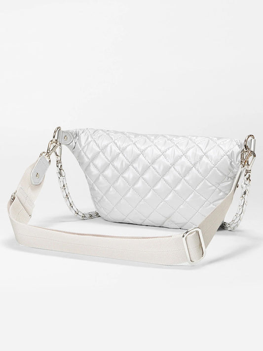 MZ Wallace Small Crosby Sling Bag in Oyster Metallic Oxford