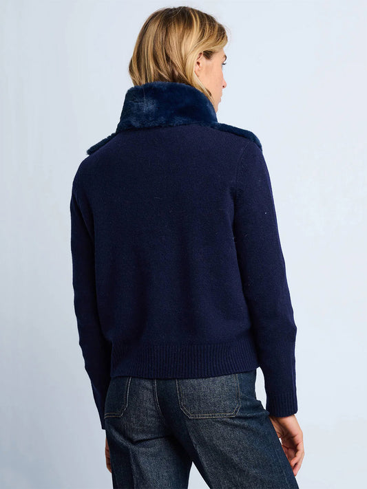 Lisa Todd Teddy Faux Fur Knit Jacket in Navy